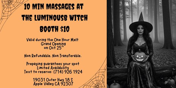 We’re opening the doors to our new sanctuary — and you’re invited! Join us for the One Hour Melt Grand Opening on Saturday ~ October 25th, a celebration infused with cozy fall magic and Halloween charm.